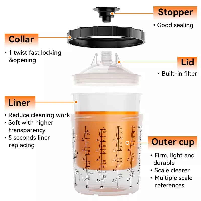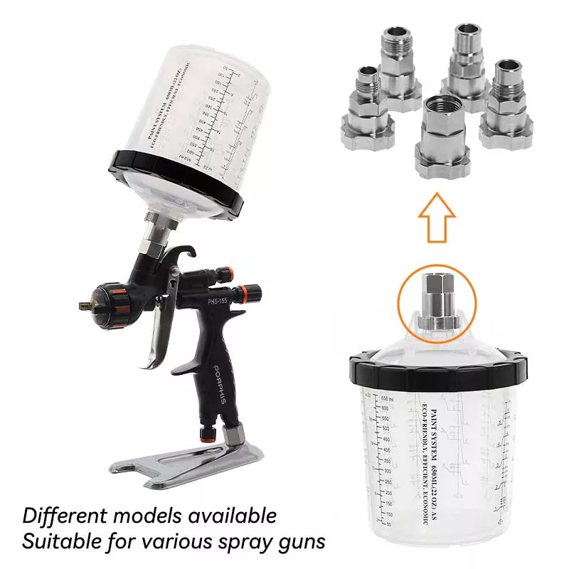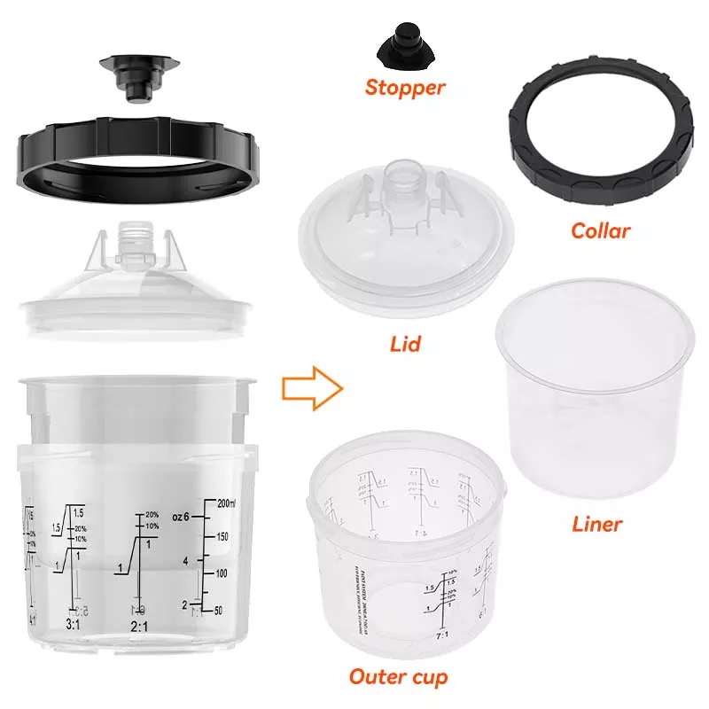 এই 200ML ডিসপোজেবল পেইন্ট কাপ সিস্টেম 1.0 মূলত ঐতিহ্যগত মাধ্যাকর্ষণ ফিড কাপকে প্রতিস্থাপন করে কারণ এটি শুধুমাত্র আরও পেইন্ট সংরক্ষণ করে না, পেইন্টিংয়ের দক্ষতাও উন্নত করে। বিশেষত, লাইনারের স্বয়ংক্রিয় স্পাইরাল ডাউনের সূক্ষ্ম নকশা যখন পেইন্টিং পেইন্টকে সম্পূর্ণরূপে ব্যবহার করে; এদিকে, দ্রুত লকিং প্লাস লাইনার প্রতিস্থাপনের নকশা কাপ ধোয়া এড়িয়ে যায়, পেইন্টিং কাজটি দক্ষতার সাথে এবং বারবার চালানোর অনুমতি দেয়। আমাদের কাছে বিভিন্ন স্প্রে বন্দুক উত্সাহীদের অভিজ্ঞতার চাহিদা মেটাতে বাজারে প্রায় সমস্ত ব্র্যান্ডের স্প্রে বন্দুকের জন্য অ্যাডাপ্টার রয়েছে। অ্যাডাপ্টারটি স্টেইনলেস স্টিল দিয়ে তৈরি, যা পেইন্ট জারা প্রতিরোধী এবং খুব টেকসই। ঢাকনার সাথে লাইনারের আঁটসাঁট সংমিশ্রণ নিশ্চিত করে যে পেইন্টিং করার সময় কাপ সিস্টেম পেইন্ট লিক না করে, এবং অপচয় এড়াতে অব্যবহৃত পেইন্টের দীর্ঘমেয়াদী স্টোরেজ সমর্থন করে।