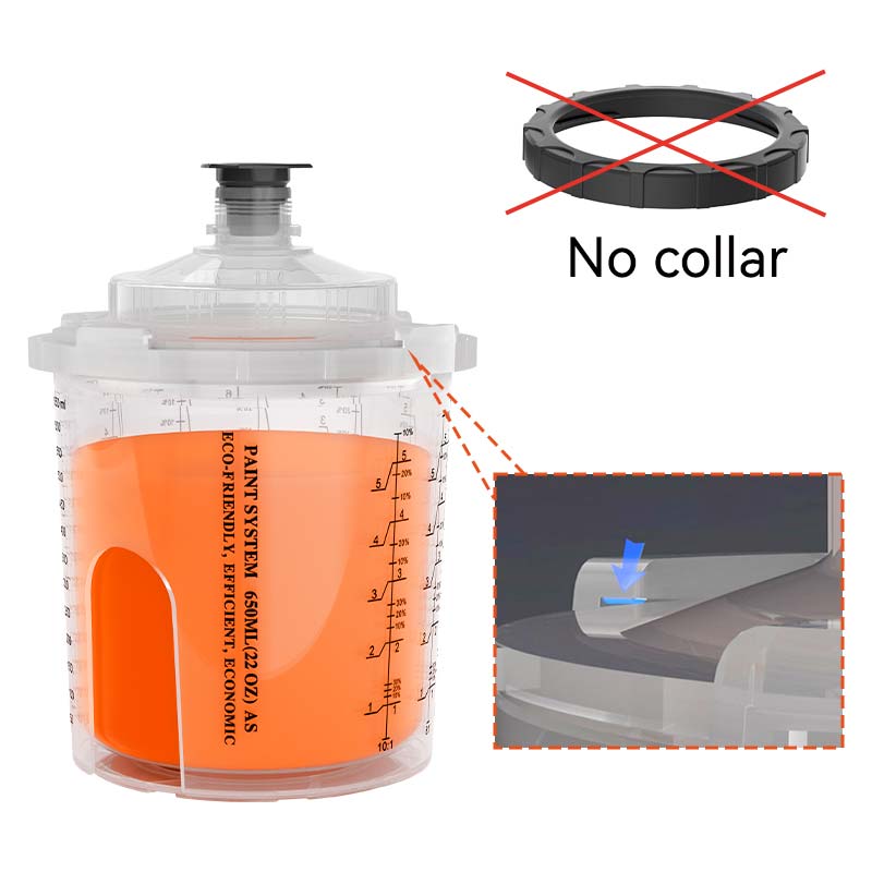 কলার , যা কাপ এবং id াকনাগুলির মধ্যে একটি শক্ত সংযোগ তৈরি করে, দীর্ঘকাল ডিসপোজেবল স্প্রে কাপ সিস্টেমে একটি গুরুত্বপূর্ণ উপাদান ছিল। ব্যস্ত পেইন্টিং সেশনগুলির সময়, চিত্রশিল্পীরা প্রায়শই কলারকে হারাতে বা ক্ষতিগ্রস্থ করে, ডিসপোজেবল স্প্রে কাপটিকে সঠিকভাবে কাজ করতে বাধা দেয়, উল্লেখযোগ্য চ্যালেঞ্জ তৈরি করে।